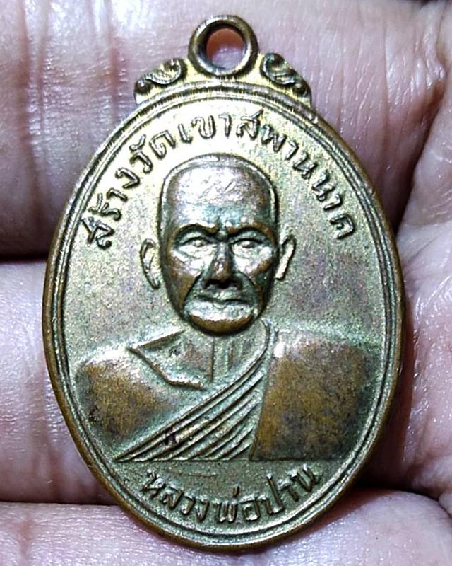 เหรียญหลวงพ่อปาน วัดบางนมโค หลังพระพุทธทรงสัตว์ต่างๆ ออกที่วัดเขาสะพานนาค เนื้อทองแดงกะไหล่ทอง จัดสร้างเมื่อปี พ.ศ.2502 แจกเพื่อเป็นที่ระลึกแก่ผู้ร่วมบูรณะวัดเขาสะพานนาค วัดเขาสพานนาคเป็นวัดที่หลวงพ่อปานร่วมกับคณะศิษย์สร้างขึ้นเพราะเป็นทาง ผ่านที่หลวงพ่อปานมาเขาวงพระจันทร์เป็นประจำ