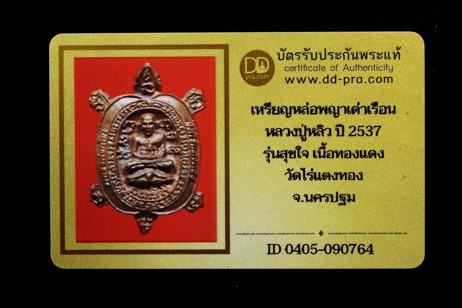 ʕ•́ᴥ•̀ʔっ..เหรียญเต่าหล่อโบราณ หลวงปู่หลิว รุ่นสุขใจ วัดไร่แตงทอง ปี 2537..2 โค๊ต เนื้อทองแดง + บัตรตรวจสอบ dd-pra