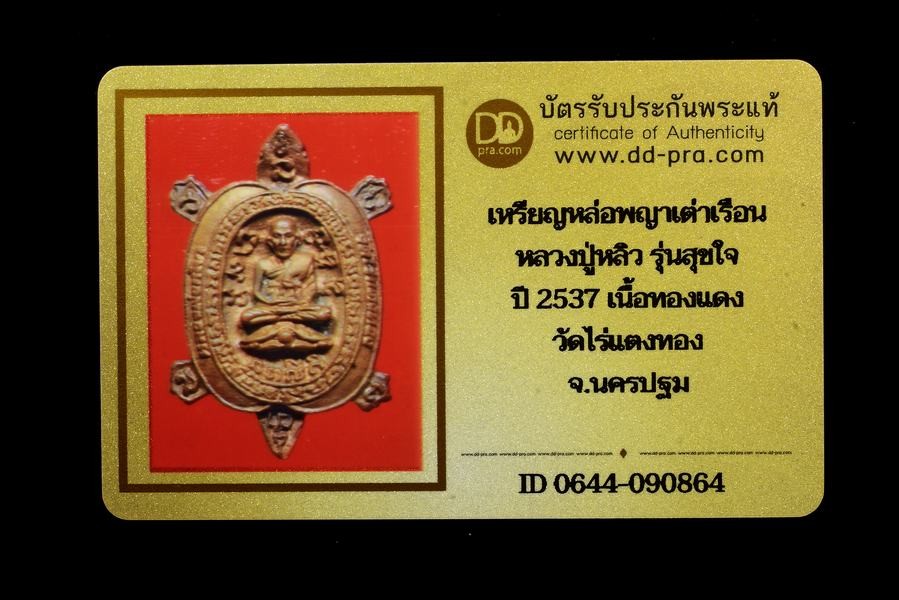 ʕ•́ᴥ•̀ʔっ..เหรียญเต่าหล่อโบราณ หลวงปู่หลิว รุ่นสุขใจ วัดไร่แตงทอง ปี 2537..2 โค๊ต เนื้อทองแดง + บัตรตรวจสอบ dd-pra