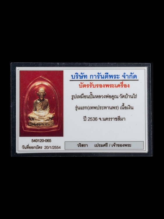 ปั๊มรูปเหมือนหลวงพ่อคูณ วัดบ้านไร่ รุ่นแรก (เทพประทานพร) เนื้อเงิน ก้นตอกโค้ด ปี 2536 จ.นครราชสีมา พร้อมกล่องเดิม+บัตร G...090-9870009