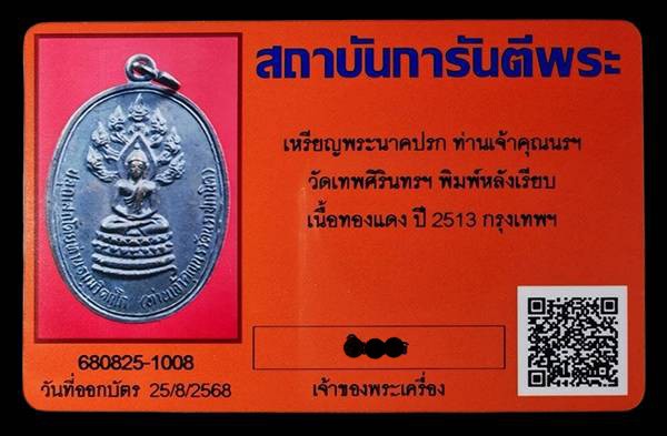 เหรียญพระนาคปรก ท่านเจ้าคุณนรฯ วัดเทพศีรินทรฯ พิมพ์หลังเรียบ ปี2513 จ.กรุเทพ.พร้อมบัตรG...090-9870009
