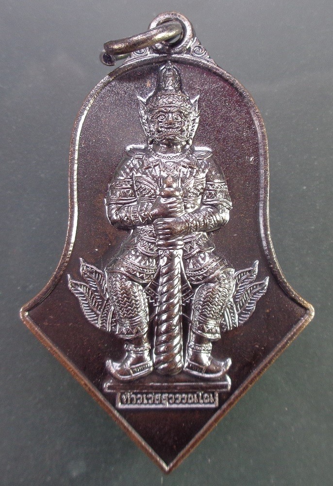 เหรียญท้าวเวสุวรรณโณ จตุมหาราชิกา พิมพ์จำปีใหญ่ รุ่นทวารวดีศรีสุพรรณภูมิ เนื้อชนวนรมดำโบราณ สวยครับ