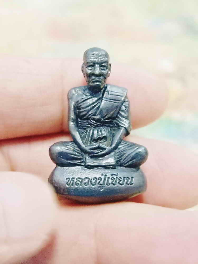 2-1772 วัดใจ 100 รูปหล่อเบ้าทุบ รุ่นสร้างบารมี หลวงปู่เขียน กิตติวังโส วัดโพธิ์ศรี จ.นครพนม 2562 ทองแดงรมดำ หมายเลข 43 กล่องเดิม