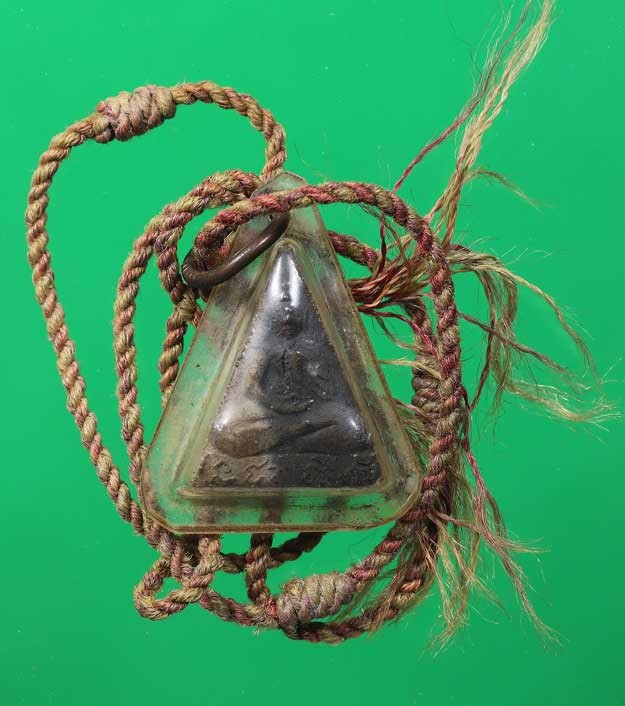 120.- เชือกสายสิญจน์ เก่า + พระเลี่ยมเก่า ไม่ทราบที่