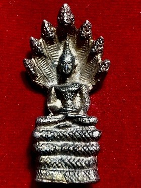 พระพุทธหล่อนาคปรกพิมพ์ใหญ่ สูง2นิ้ว เนื้อโลหะผสม ไม่ทราบที่