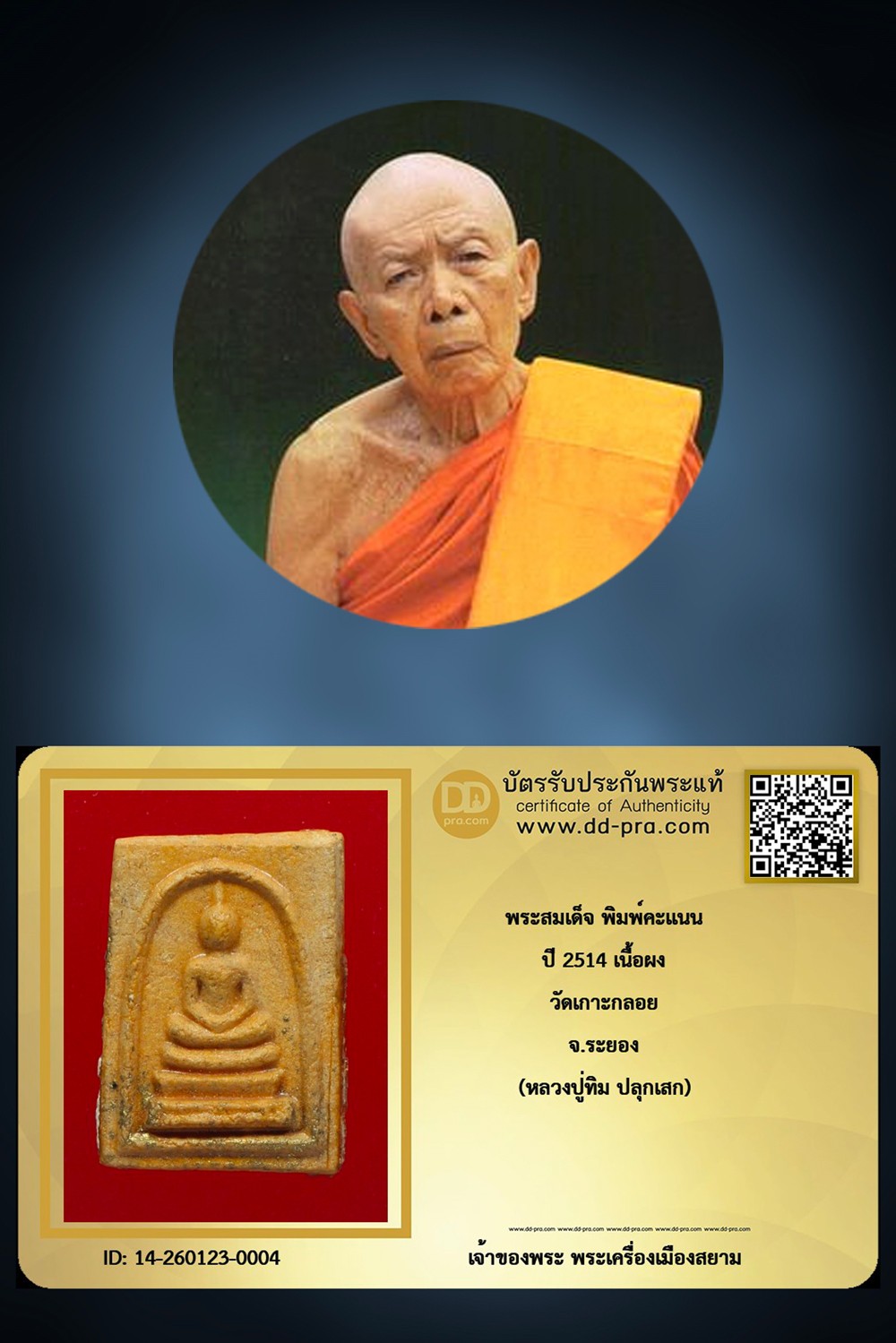 +++ เริ่มประมูล พระแท้ๆ ครับ เริ่ม 40 บาท พระสมเด็จ ปี 2514 เนื้อผง วัดเกาะกลอย จ.ระยอง (หลวงปู่ทิม ปลุกเส) +++ หายากมาก ครับ ข้อมูลตามบัตรรับประกัน ครับ +++