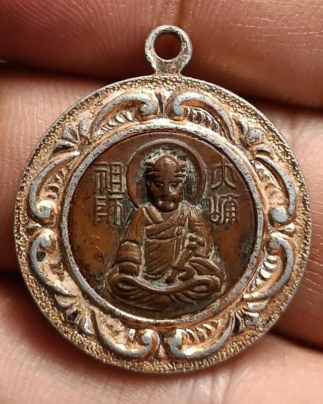เหรียญไต้ฮงกง ปี 2500 พิมพ์เล็ก หน้าเดียว พร้อมกรอบเนื้ออลูมิเนียมกะไหล่ทอง ขนาดรวมกรอบ 2.5 ซ.ม.