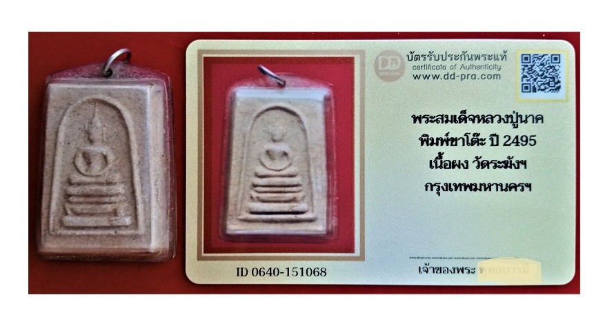 หลวงปู่นาค พิมพ์ขาโต๊ะ สวย เดิม วินเทจ ปี 2495 เนื้อผง วัดระฆังฯ + บัตรรับรอง