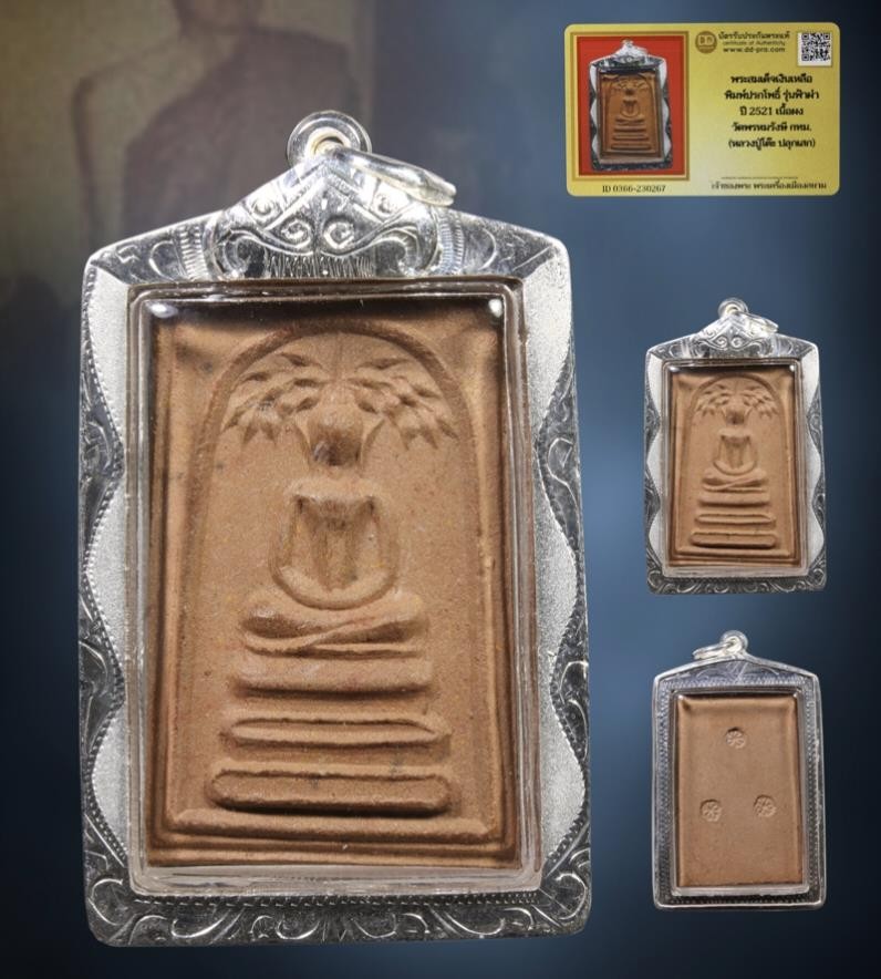 2500.-พระสมเด็จเงินเหลือ รุ่นฟ้าผ่าพิมพ์ปรกโพธิ์(หลวงปู่โต๊ะ ปลุกเสก)ปี2521วัดพรหมรังษี กทม. เลี่ยมเงินพร้อมบัตรดีดี