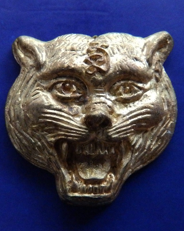 3.หน้ากากเสือหล่อโบราณ เนื้อทองทิพย์ หลวงปู่คำบุ วัดกุดชมภู ตอกโค้ด+เลข พร้อมกล่องเดิม