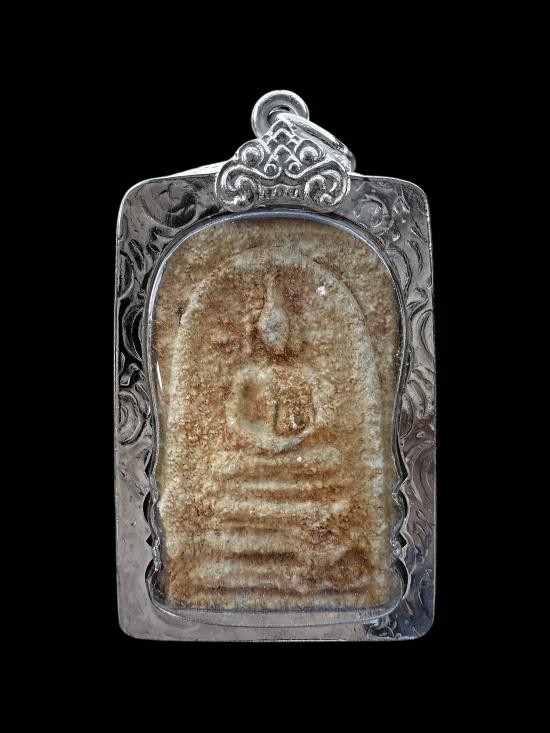 ด้านหน้า: จำลองพิมพ์จากพระสมเด็จบางขุนพรหมพิมพ์ใหญ่ดั้งเดิม เส้นสายมีความคมชัด ล่ำสัน