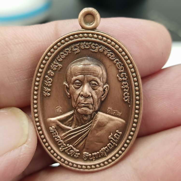 2-379 วัดใจ 100 เหรียญพิมพ์ไข่ รุ่นเจริญทรัพย์มงคล หลวงปู่โต๊ะ ออกวัดถ้ำสิงโตทอง ราชบุรี เนื้อทองแดงซาติน หลังพัดยศ หมายเลข 17 กล่องเดิม