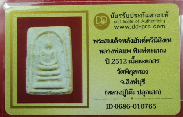 ʕ•́ᴥ•̀ʔっ. . พระสมเด็จหลังยันต์ตรีนิสิงเห หลวงพ่อแพ วัดพิกุลทอง พิมพ์คะแนน ปี 2512 + บัตรตรวจสอบ dd-pra