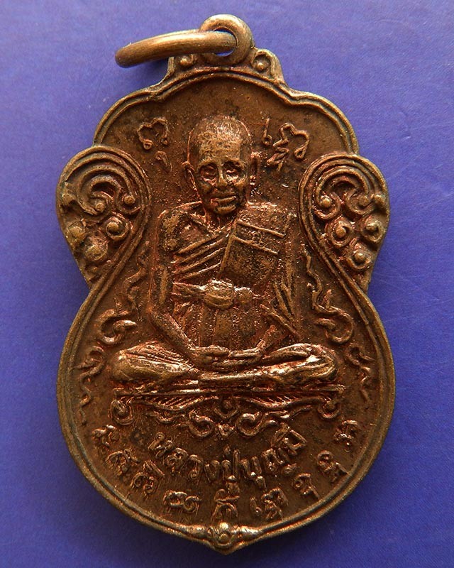 หลวงพ่อบุญมี วัดอ่างแก้ว ธนบุรี เหรียญเสมา รุ่นยกช่อฟ้าอุโบสถ เนื้อทองแดง ปี 2517 พระบาทสมเด็จพระเจ้าอยู่หัวทรงเสด็จพระราชดำเนินทรงมีพระราชกุศลยกช่อฟ้า อุโบสถวัดอ่างแก้ว เหรียญตอกหมายเลขกำกับ หลวงพ่อบุญมีเป็นศิษย์ของ หลวงปู่เอี่ยม วัดหนัง มีศิษย์รุ่นเดียวกันคือท่านเจ้าคุณผล และท่านเจ้าคุณวิเชียร แต่หลวงพ่อบุญมีไปเป็นเจ้าอาวาส วัดอ่างแก้ว ลักษณะเหรนียญจึงมีความคล้ายคลึงเหมือนของอาจารย์และศิษย์สำนักเดียวกัน เหรียญสภาพสวยมาก ไม่เคยผ่านการใช้มาก่อน