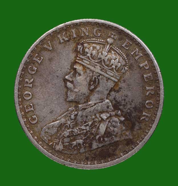 เหรียญ 1 รูปี บริติชอินเดีย ปี 1918 (พ.ศ. 2461) เนื้อเงิน พระบรมรูปของพระเจ้าจอร์จที่ 5 (King George V)