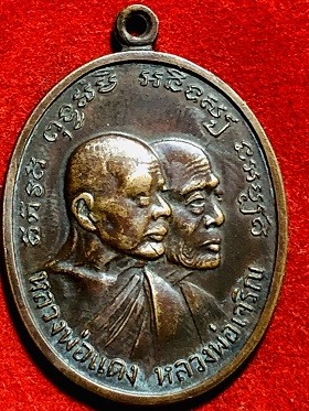 เหรียญหลวงพ่อแดง-หลวงพ่อเจริญ รุ่นโบสถ์ลั่น เนื้อทองแดง วัดเขาบันไดอิฐ จ.เพชรบุรี ปี2513