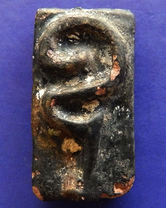 ยันต์ อุ เนื้อดินเผา ลงรัก ยาว 2.5 ซ.ม. พระบ้านเก่าเก็บหลายสิบปี