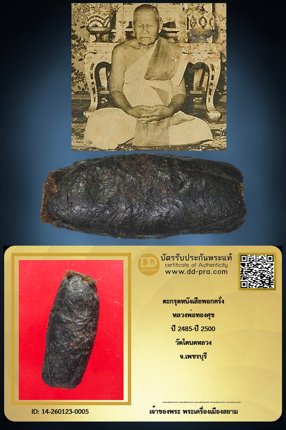 +++ เริ่มประมูล พระแท้ๆ เริ่ม 40 บาท ครับ ตะกรุดหนังหน้าผากเสือพอกครั่ง หลวงพ่อทองสุข ปี 2485 - ปี 2500 วัดโตนดหลวง จ.เพชรบุรี +++ หายากมาก ครับ ข้อมูลตามบัตรรับประกัน +++