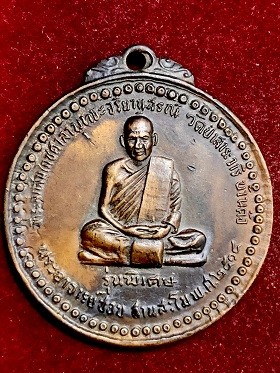 เหรียญกลมใหญ่พระอาจารย์ชอบ ฐานสะโม รุ่นพิเศษ เนื้อทองแดง วัดป่าสาระวารี จ.เลย พ.ศ. ๒๕๑๘