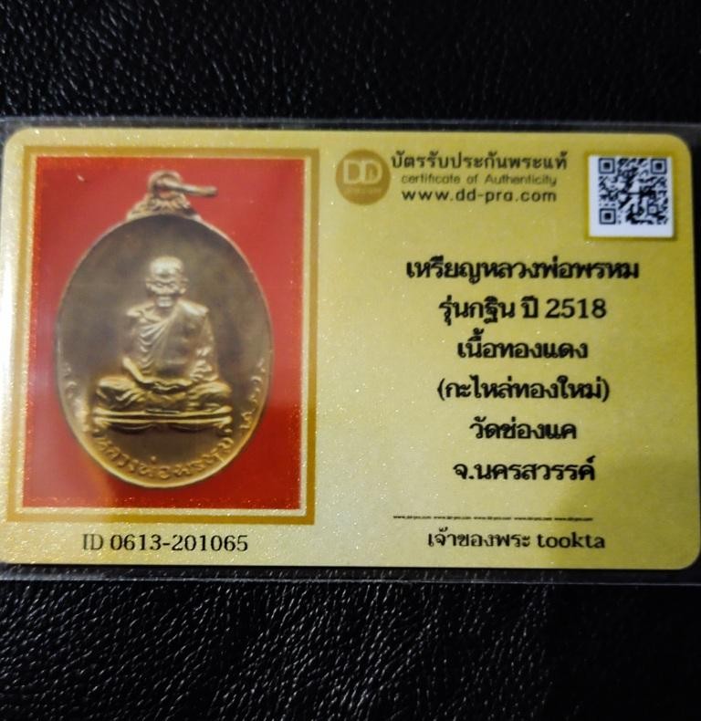 2900.-เหรียญหลวงพ่อพรหม ที่ระลึกในงานทอดกฐิน วัดช่องแค ปี 2518 พร้อมตลับเงินผสมลงยา+บัตรดีดี