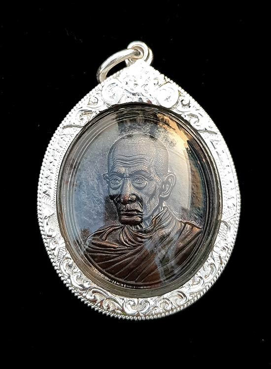 1700.-เหรียญ กฐิน 2558 หลวงพ่อรวย วัดตะโก อยุธยา เนื้อทองแดงรมดำ เลี่ยมเงินสั่งทำ