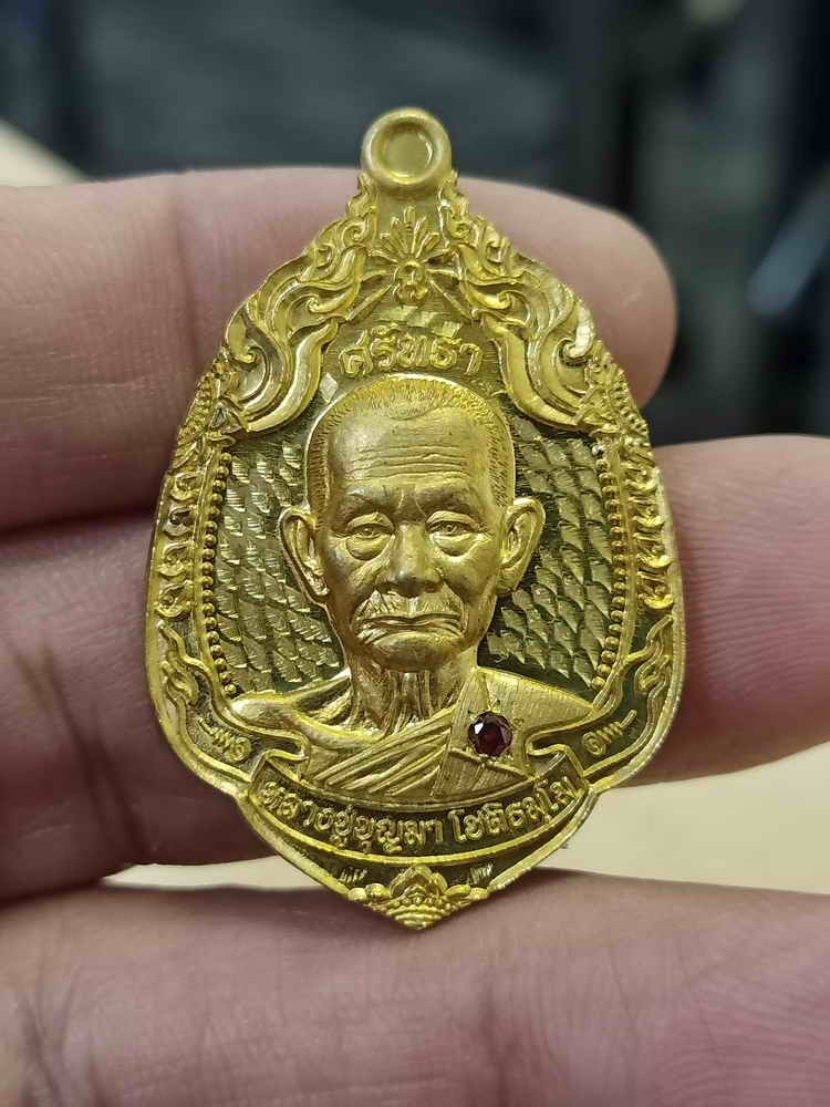 2-15 วัดใจ 100 เหรียญบงกช รุ่นศรัทธา 7 รอบ หลวงปู่บุญมา สำนักสงฆ์เขาแก้วทอง จ.ปราจีนบุรี ปี 2567 ทองทิพย์ ฝังพลอยแดง หมายเลข 6 กล่องเดิม