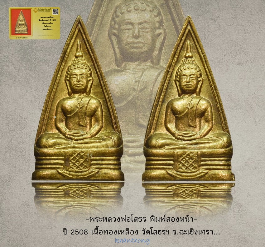 ʕ•́ᴥ•̀ʔっ..พระหลวงพ่อโสธร พิมพ์สองหน้า ปี 2508 วัดโสธรฯ จ.ฉะเชิงเทรา + บัตรตรวจสอบ dd-pra