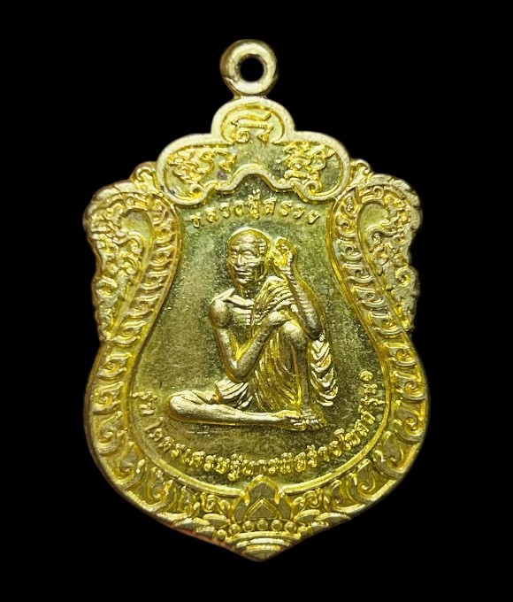 เหรียญเสมาเนื้อทองสตางค์ หลวงปู่สรวง รุ่นโคตรเศรษฐีบารมีสร้างโบสถ์ วัดป่าพลาญเพชร ศรีสะเกษ