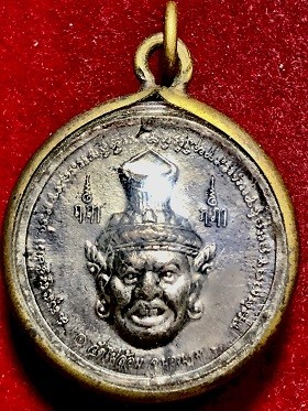 เหรียญหล่อเศียรพ่อแก-พระพิฆเณศ วัดไผ่ล้อม จ.นครปฐม ๒๕๒๐ เลี่ยมจับขอบทองเหลือง