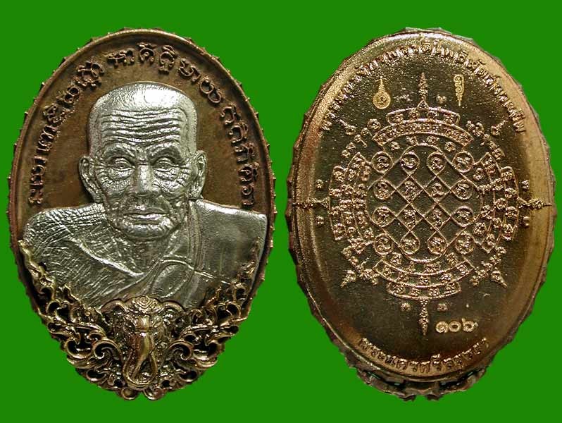 หลวงปู่ทวดปาฏิหารย์สองโพธิสัตว์ เหรียญหล่อรูปไข่หลังยันต์ จัตตุพุทยา สูง 3.5 ซ.ม. อุดกริ่งมวลสาร