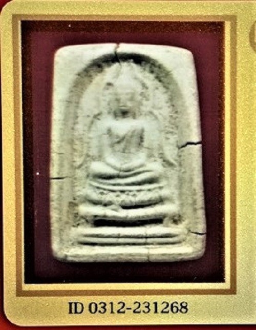 หลวงพ่อกวย พระสมเด็จแหวกม่าน วัดโฆสิตาราม (ถอดพิมพ์วัดเทพากร) ปี 2515 เนื้อผง + บัตรรับรอง