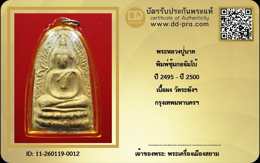 +++ เริ่มประมูล พระแท้ๆ 40 ครับ พระหลวงปู่นาค พิมพ์ซุ้มกอใหญ่ ปี 2495 เนื้อผงวัดระฆังฯ กทม. เนื้อจัดจ้าน +++ หายากมาก ครับ ข้อมูลตามบัตรรับประกัน ครับ +++