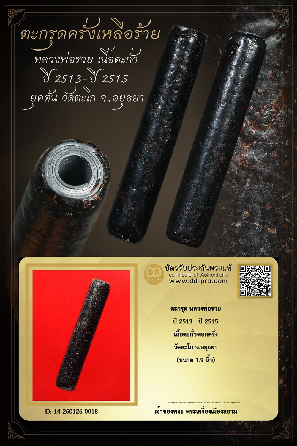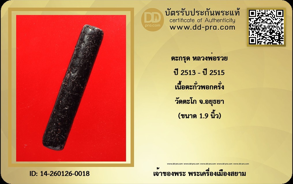 +++ เริ่มประมูล พระแท้ๆ เริ่ม 40 บาท ครับ ตะกรุด หลวงพ่อรวย เนื้อตะกั่วพอกครั่ง ปี 2513-ปี 2515 วัดตะโก จ.อยุธยา +++ หายากมาก ครับ ข้อมูลตามบัตรรับประกัน +++