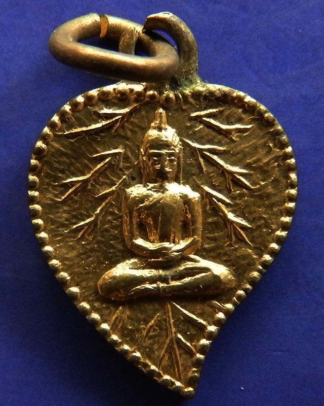 เหรียญใบโพธิ์เล็ก หลวงพ่อโสธร หลวงพ่อดิ่ง วัดบางวัว ปลุกเสก กะไหล่ทอง
