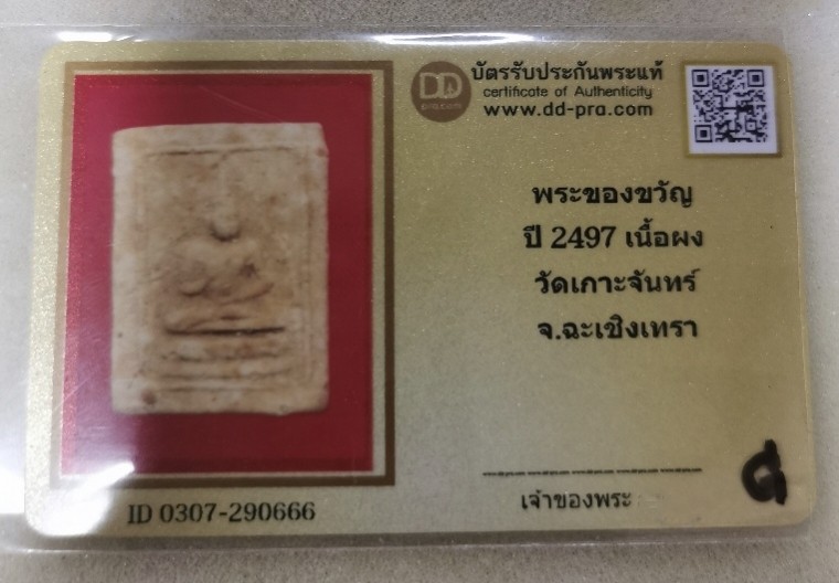 2000.-พระผงของขวัญ ออกวัดเกาะจันทร์ ปี 2497 หลังยันต์ จ.ฉะเชิงเทรา พร้อมบัตร(หลวงพ่อสด วัดปากน้ำปลุกเสก) องค์ที่1 พร้อมบัตร
