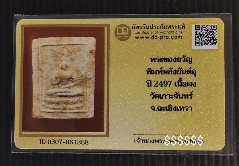 2000.-พระผงของขวัญ ออกวัดเกาะจันทร์ ปี 2497 หลังยันต์ จ.ฉะเชิงเทรา พร้อมบัตร(หลวงพ่อสด วัดปากน้ำปลุกเสก) องค์ที่2 พร้อมบัตร