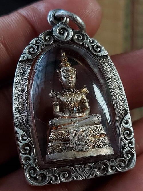 2700.-กริ่งพระแก้วมรกต กรมสรรพามิตร เนื้อเงินปี2539 พร้อมเลี่ยมเงินสั่งทำอย่างหนา