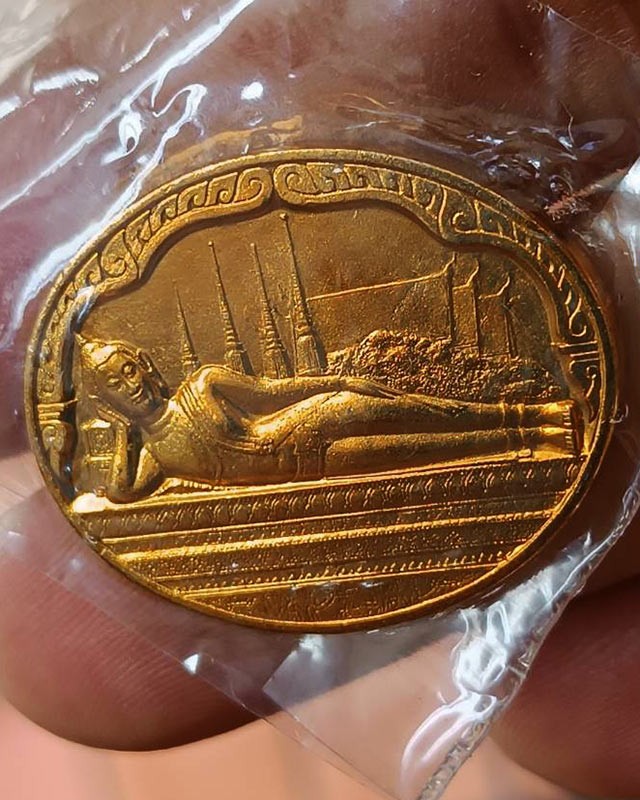 กรัม เส้นผ่าศูนย์กลาง 3 เซนติเมตร ด้านหน้าเป็นรูปพระพุทธไสยาสน์