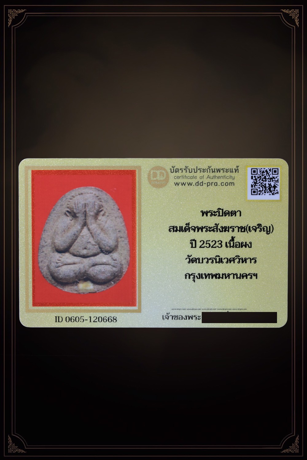 พระปิดตา สมเด็จพระสังฆราช(เจริญ) ปี2523 เนื้อผง วัดบวรนิเวศวิหาร กรุงเทพมหานครฯ
