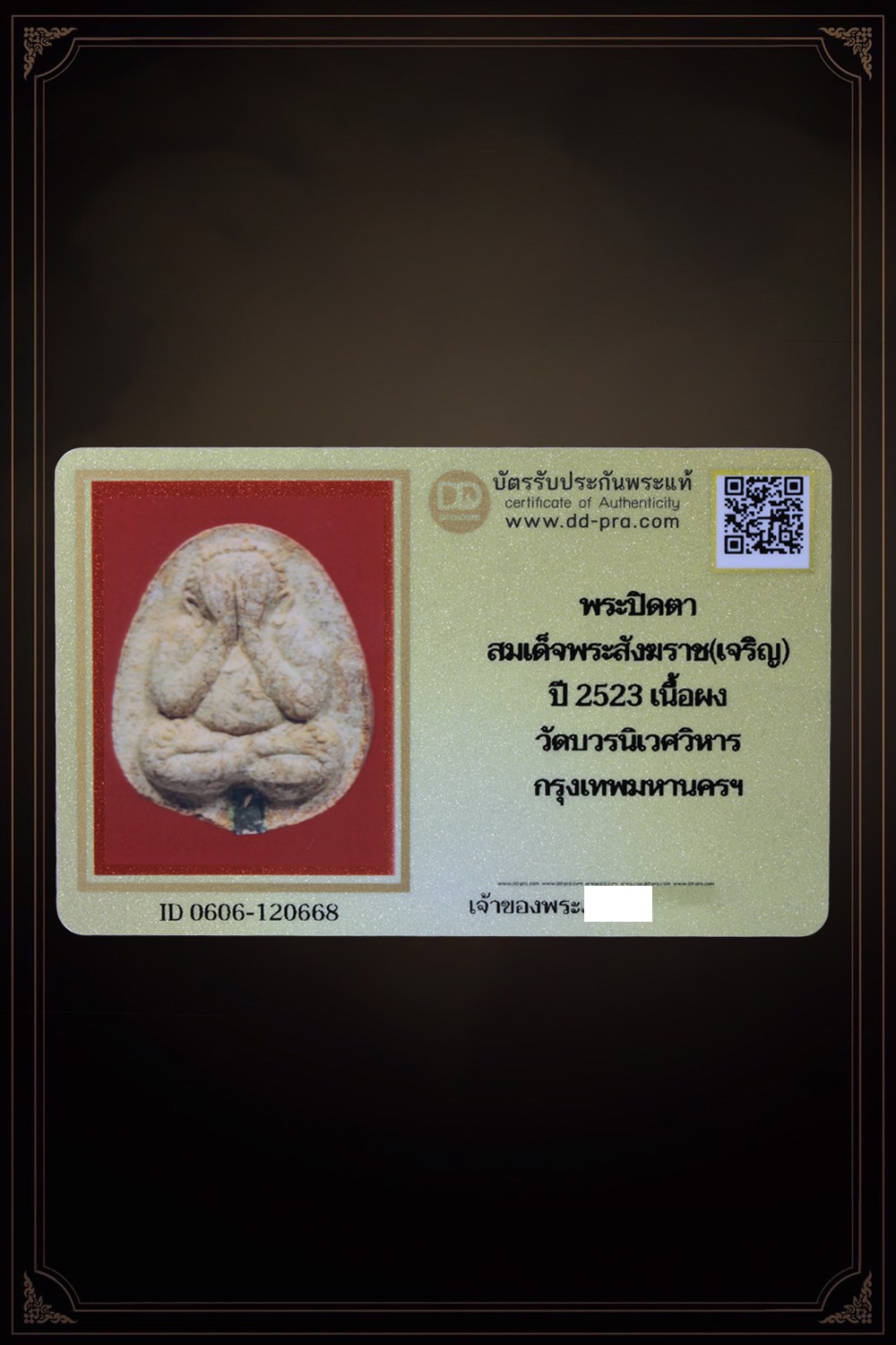 พระปิดตา สมเด็จพระสังฆราช(เจริญ) ปี 2523 เนื้อผง วัดบวรนิเวศวิหาร กรุงเทพมหานครฯ