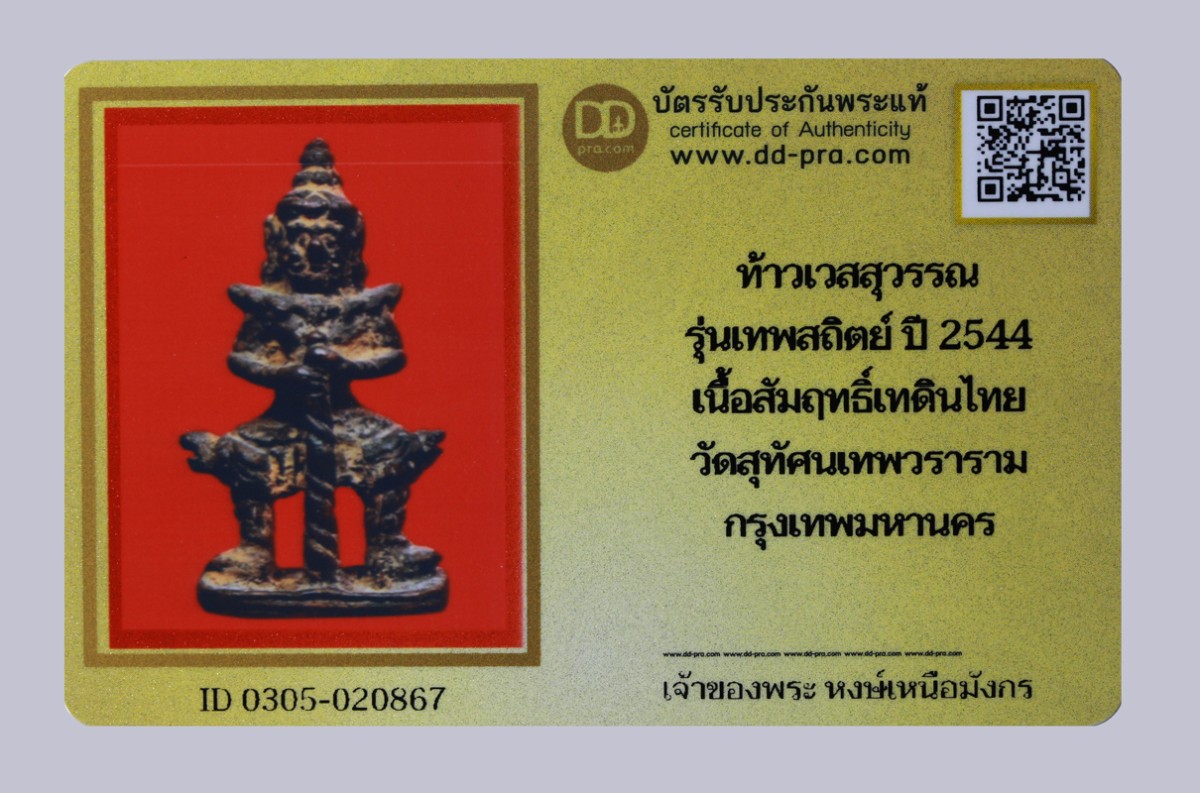 ท้าวเวสุวรรณ รุ่นเทพสถิต์ ปี 2544 เนื้อสัมฤทธิ์เทดินไทย วัดสุทัศ กรุงเทพมหานคร