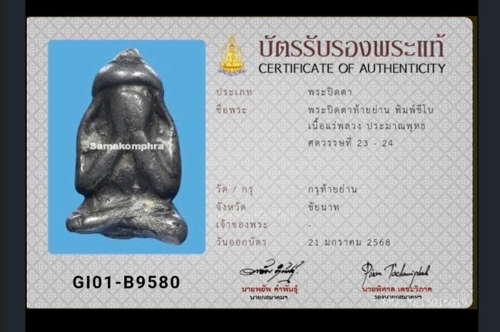 พระปิดตากรุท้ายย่าน พิมพ์ชีโบ เนื้อแร่พลวง จ.ชัยนาท (บัตรสมาคม)