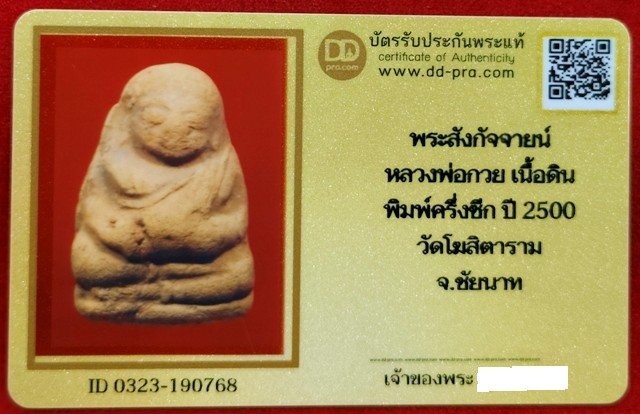 พระสังกัจจายน์ หลวงพ่อกวย เนื้อดิน ปี2500 สวยเก่าดูง่าย +บัตรดีดีพระครับ