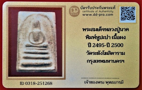 หลวงปู่นาค พิมพ์หูปะบ่า (ใหญ่) เนื้อผง ปี 2495-ปี 2500 วัดระฆังโฆสิตาราม + บัตรรับรอง