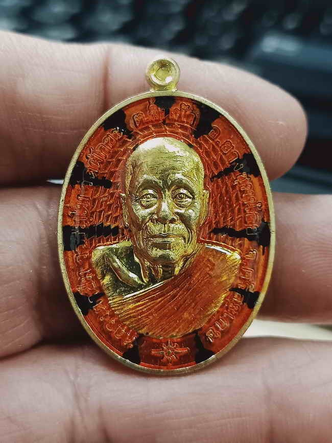 2-1124 วัดใจ 150 เหรียญชนะจน สร้างพระใหญ่ หลวงตาขึม วัดผักขะ จ.ศรีสะเกษ 2564 ทองทิพย์ ลงยาลายเสือส้ม หมายเลข 759 กล่องเดิม