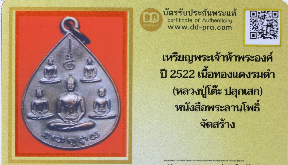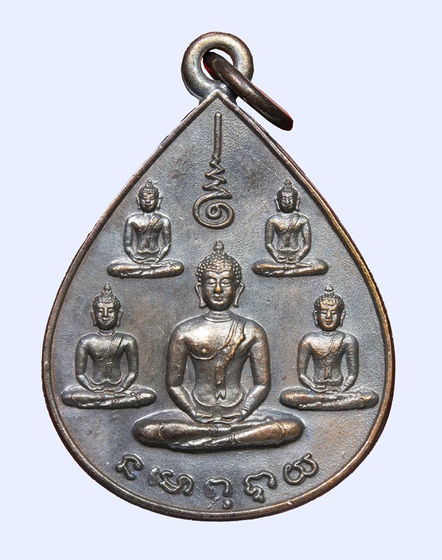 เหรียญพระเจ้าห้าพระองค์ ปี 2522 เนื้อทองแดงรมดำ (หลวงปู่โต๊ะ ปลุกเสก) หนังสือพระลานโพธิ์ จัดสร้าง