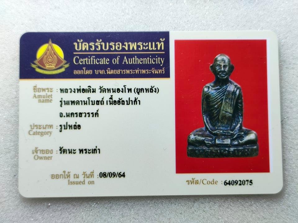รูปหล่อปั๊มหลวงพ่อเดิม วัดหนองโพ รุ่นเพดานโบสถ์ เนื้อทองเหลือง จ.นครสวรรค์ ปี 2493