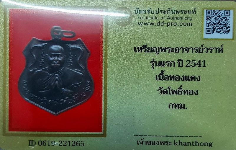 เหรียญพระอาจารย์วราห์ วัดโพธิ์ทอง รุ่นแรก วัดโพธิ์ทอง กทม. ปี2541