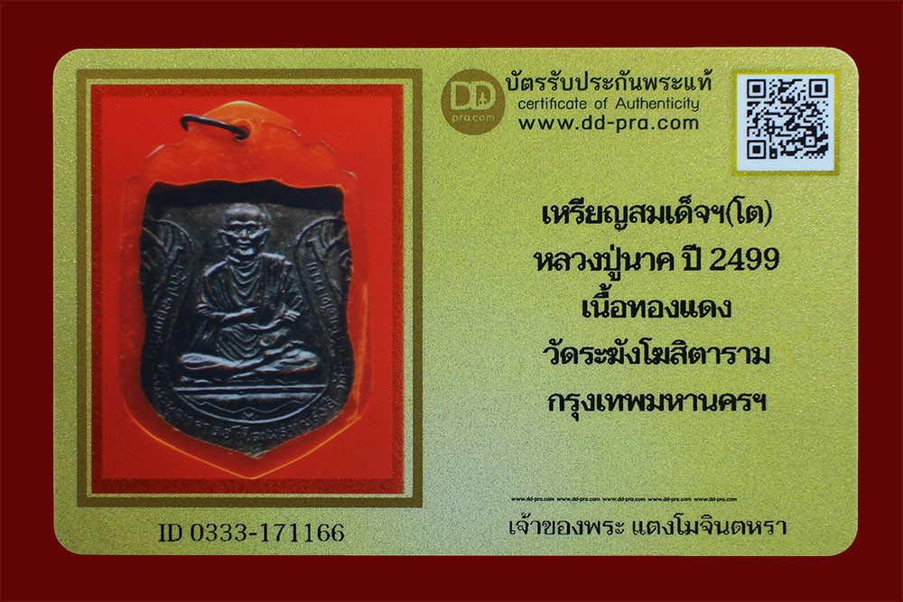 เหรียญสมเด็จพุฒาจารย์โต วัดระฆังโฆสิตาราม กทม ปี2499