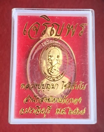 เหรียญ หลวงปู่บุญมา โชติธัมโม วัดเขาแก้วทอง อ.กบินทร์บุรี จ.ปราจีนบุรี พ.ศ.๒๕๖๗ เหนือเจริญพร เนื้อกะหลั่ยทอง ลงยา สภาพสวย โค๊ตเลข ๒๖๙